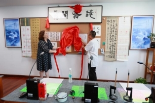活动伊始,光明中学朱晓薇校长、著名书法家徐庆华教授、黄浦区美术教研员阎敏智慧为书法教室的正式启用一起剪彩。随后嘉宾参观了智慧书法教室,体验了超短视距虚拟投屏设备和智能书法教学软件。徐庆华教授还为书法教室题匾“远翥阁”,寓意光明学子志向高远、展翅远航。朱校长和徐庆华教授一起为牌匾揭红,期待光明中学书法教育事业蒸蒸日上、墨香鸿运。